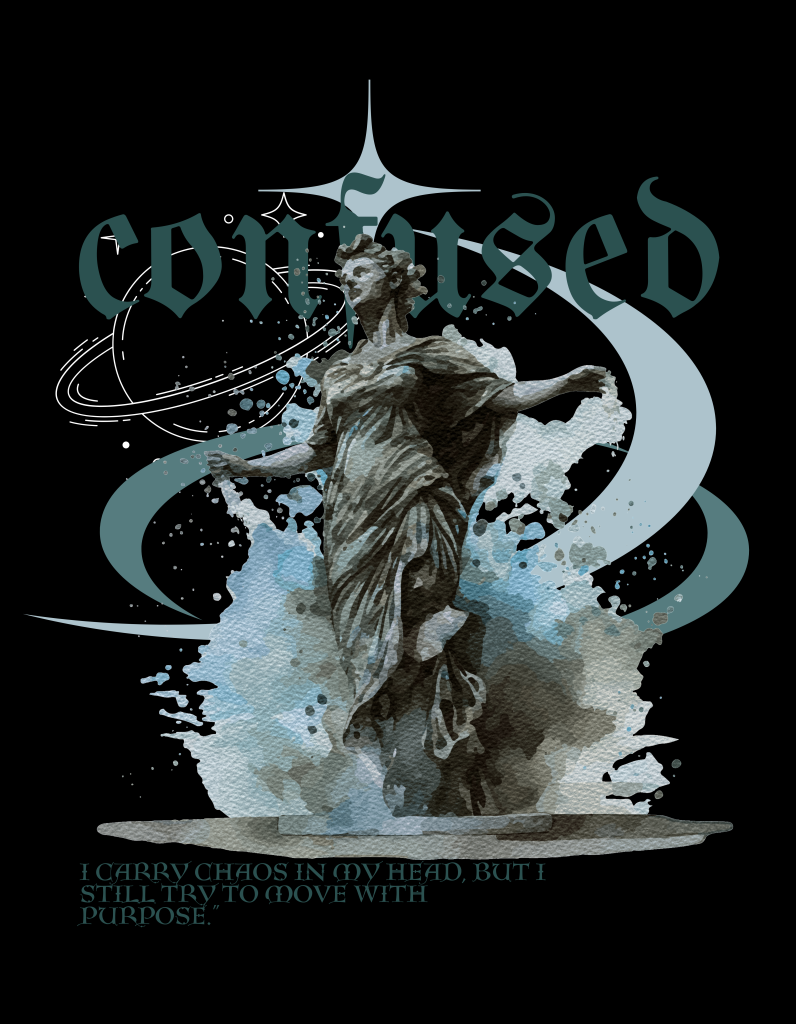 Lewat desain kaos yang terinspirasi dari keresahan, kebingungan, overthinking, hingga momen absurd sehari-hari, LUVI mencoba menghadirkan karya yang terasa “dekat”—seolah berbicara langsung pada yang memakainya.